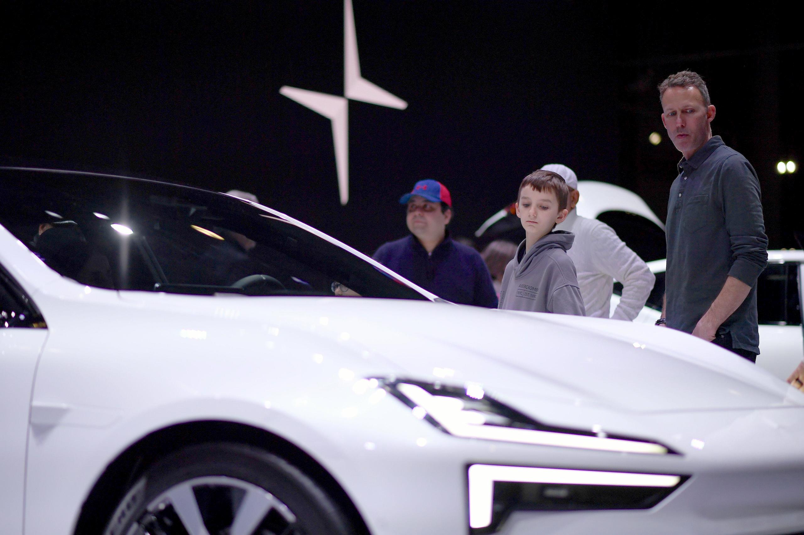 At the 2024 new york International Auto Show, people are watching the electric cars on display. Image source: Anthony Behar/Alamy