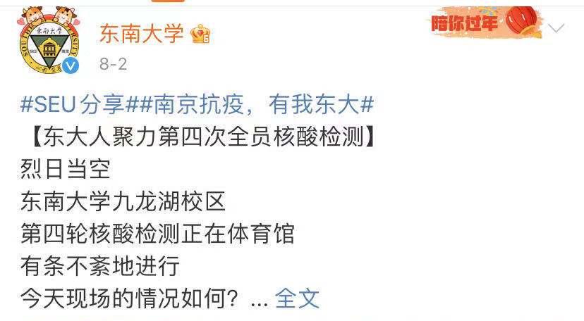 On July 28th, Southeast University issued a notice that the holiday scheduled for August 2nd will not be implemented for the fall semester of the 2021-2022 school year.Advance to August 2, 2021.Students’ holiday time and staff rotation time are postponed accordingly. According to the overall teaching plan for the fall semester of the 2021-2022 school year, combined with the epidemic prevention and control situation, arrangements will be made later in the 35-day holiday. However, students who are already outside the school will not return to school for the time being.