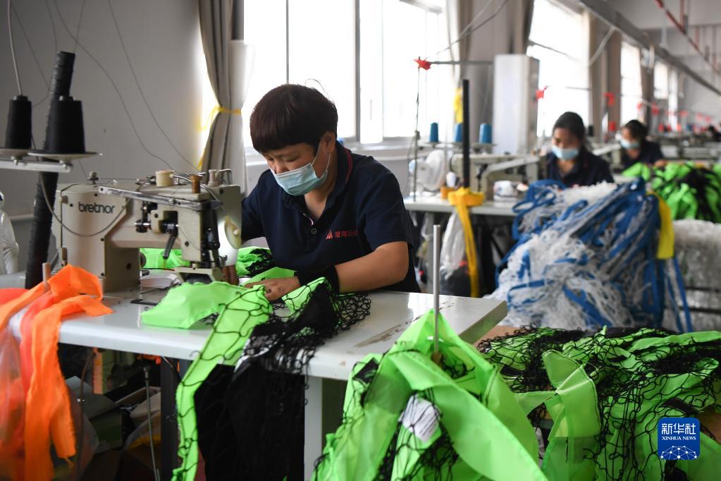 On September 27, 2022, workers processed sports nets in Hunan Xinghai Sporting Goods Co., Ltd., Yuanjiang City, Hunan Province. In recent years, this traditional fishing net manufacturer has transformed to produce sports and leisure nets.