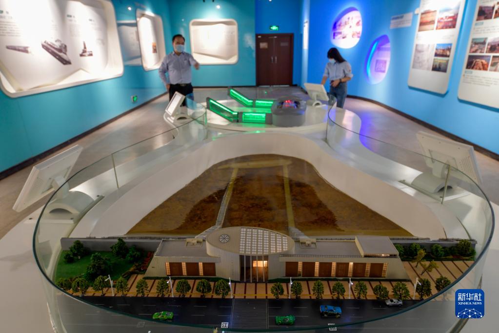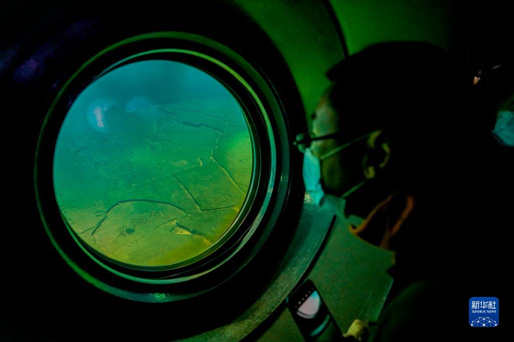 Visitors watch the inscription of Baiheliang in the protective cover through the viewing window in the underwater gallery of Chongqing Baiheliang Underwater Museum (photo taken on February 21, 2021).